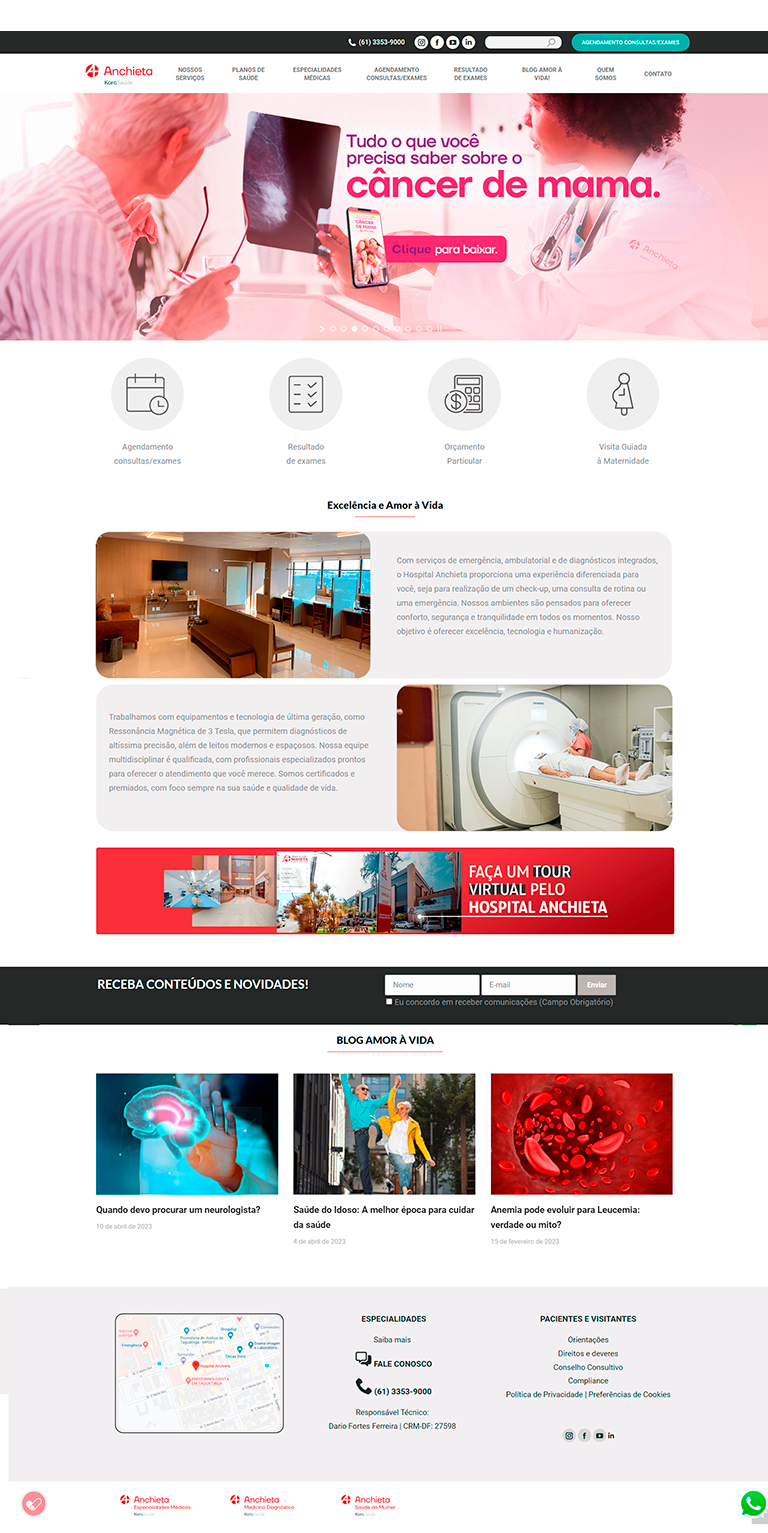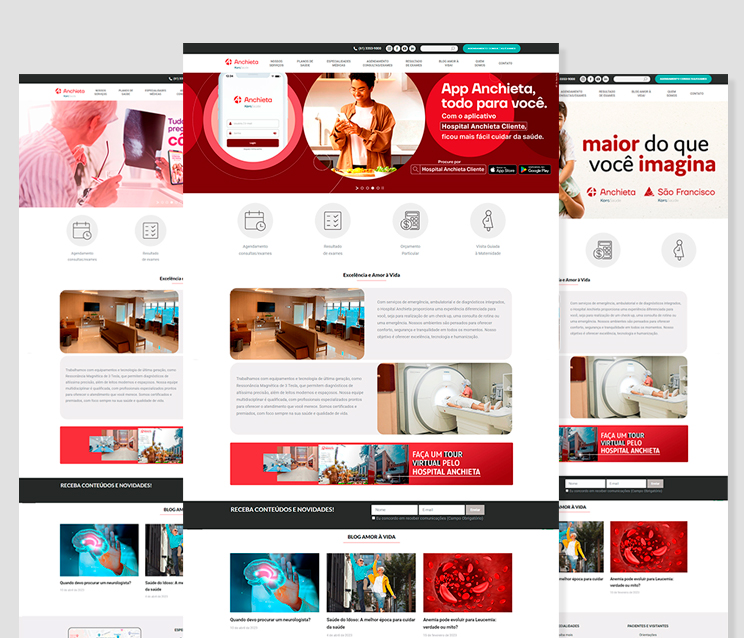 Parceria de mais de 04 anos. Desenvolvemos o site do Hospital Anchieta com foco na experiência do usuário. Header em destaque e sempre com novidades e serviços mais procurados em destaque, de forma acessível e de fácil visualização.