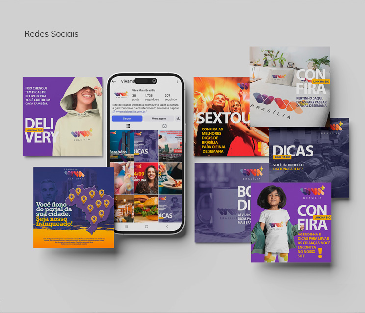 Desde a concepção da logomarca, passando pelo desenvolvimento de todo o enxoval de peças gráficas da marca, atuamos de forma estratégica na construção da identidade do Viva Mais Brasília, garantindo consistência visual e posicionamento alinhado ao seu propósito. Desenvolvemos o portal Viva Mais Brasília, um projeto digital que conecta moradores e visitantes ao melhor da cultura, lazer e entretenimento da capital. Partindo do entendimento de que fomentar o acesso à informação, à cultura, à diversidade e às experiências também é um propósito, criamos uma plataforma intuitiva, dinâmica e preparada para reunir e organizar conteúdos diversos sobre a cidade. Além do desenvolvimento do site, estruturamos a presença digital do Viva Mais Brasília nas redes sociais, com estratégia de conteúdo voltada para ampliar a visibilidade do portal, aumentar o tráfego qualificado e gerar engajamento com o público. O resultado é um ecossistema digital integrado, que fortalece a marca, valoriza a cena cultural local e amplia o alcance das informações.